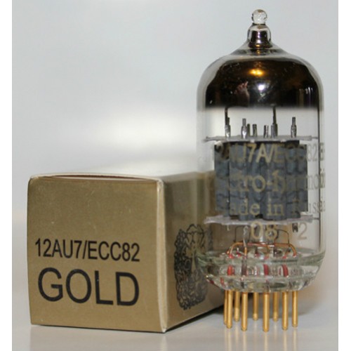 Premium gold pin version of 12AU7. Medium-mu twin triode for use in preamplifier and driver circuits.