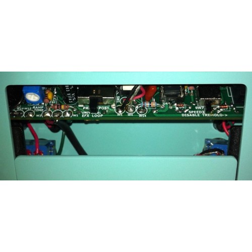 After January NAMM 2012, we had so many players asking if they could 'use it as a separate Vibe and Tremolo in one pedal', so a last minute change was necessary.  Inside the battery compartment, a switch was added that allows the user to disable the tremolo for Speed 2.  This way, Speed 1 is a Tremolo(its Vibe control can still be blended in if preferred), and Speed 2 operates as a Vibe only.  Additionally, the ramp switch was further modified to allow ramping between the Vibe 1 and 2 settings, along with ramping between the Speeds 1 and 2.  This allows for a much smoother transition when set differently, and you can even do things like turn Vibe 1 down fully with Vibe 2 up, and the Vibe effect disappears slowly as the speed changes......really cool effect.
