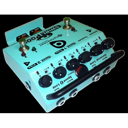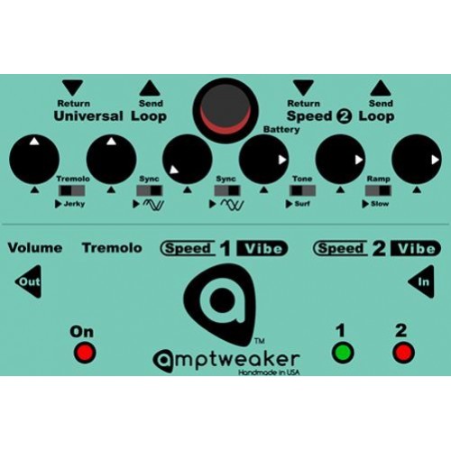 Amptweaker’s standard effects loop with Pre/Post options is also included on the back, which makes it easy to add distortion, delay, eq or other effects to build your own special swirly tone. There's also a 2nd loop, that allows you to add a pre-effect when Speed 2 is active....so you could use Speed 2 as a boost, or put additional modulation effects in for really wild ride!  Other standard Amptweaker features include the LED side-illumination of controls, 14 gauge steel housing with magnetic battery access, and true bypass switching.