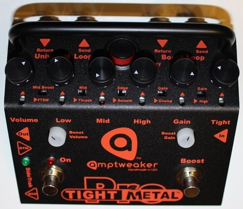 Since introducing the popular TightMetal™ distortion pedal in 2011, Amptweaker™ has received many requests for a two button version. Unlike most distortion pedals with boost, the TightMetal Pro includes 2 Boost knobs, one before and one after the distortion.....so it’s easy to boost the gain AND volume, for the perfect solo tone. There’s also a Midboost button that works with the output Boost knob, to help solos cut through the mix.