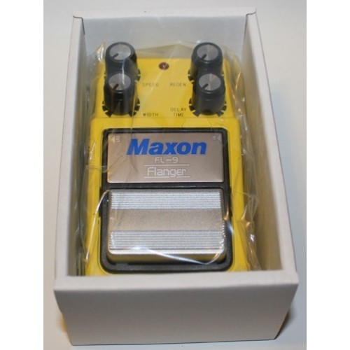 The analog signal path of the Maxon FL-9 Flanger pedal uses the Panasonic MN3207 BBD IC to create some of the richest, thickest flanging and time-delay effects possible. Rate, Depth, and Regeneration controls allow the user to dial in everything for shimmering chorus and vibrato to hollow, metallic overtones to thick, jet-like flanging sweeps. In addition to standard controls the FL-9 features a Delay Time knob that allows for a vast array of all-new spatial effects. Silent operation makes the Maxon FL-9 at home on the stage or in the studio.