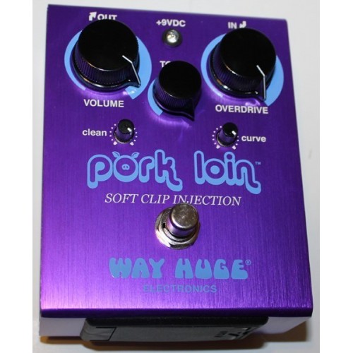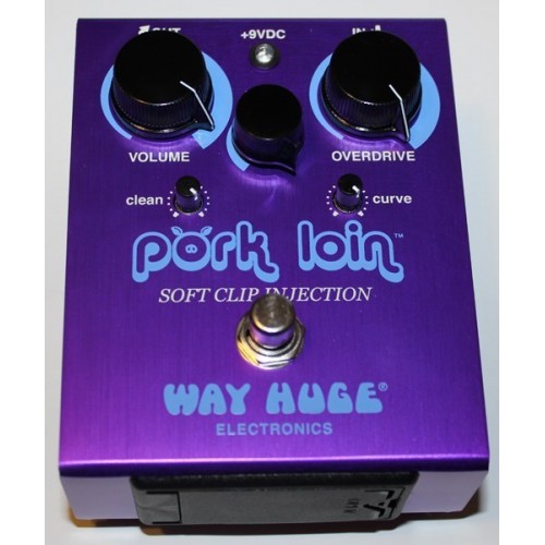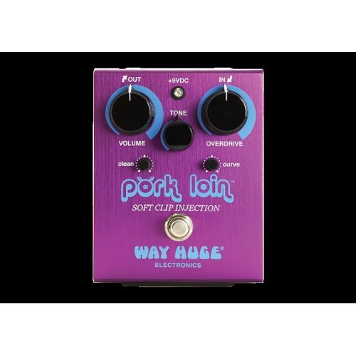 Make room for one more Way Huge original! The Pork Loin incorporates two distinct tonal pathways that are blended together—a modern soft clipping overdrive and a modified classic British preamp for clean. At the heart of the Pork Loin’s overdrive path is a soft clipped BiFET overdrive gain stage with a passive Tone control, rounded out by a Curve function that gives the user freedom to fine-tune corner frequencies. The Volume control regulates the masses of pork power that exude from its space age circuitry, leaving room for the Clean control to blend in its warm glistening clean tones. Additionally, the Pork Loin has three internal mini controls: Filter and Voice deliver extensive tonal shaping possibilities, while the overdrive Mix control allows the Pork Loin to be run as a clean preamp. With a wide range of dynamic tones, the Pork Loin is the premier overdrive pedal on the market today!