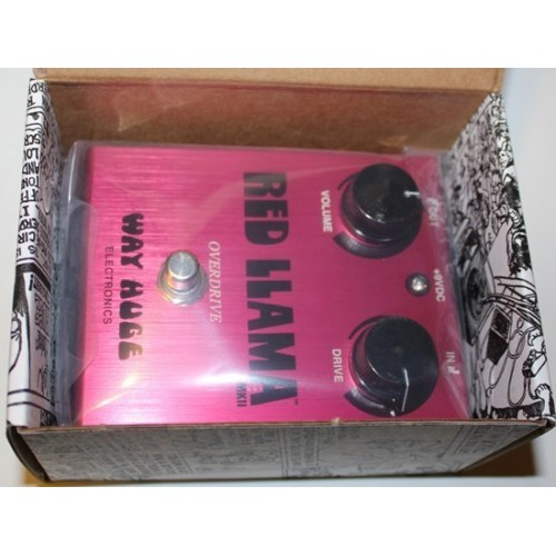 The often imitated but never duplicated thunder of the Red Llama is back! This is not a reproduction, but a continuation of where the groundbreaking archetype left off in 1999. Every single feature that made the Red Llama so mighty is still in place, right where Mr. Huge left them. Season to taste any amp, big or small, clean or dirty the Llama is the perfect compliment to them all, with a rich harmonic palette available on the austere control panel. Spin the drive knob and go from a gentle grind all the way up to massive distortion. Use lower settings for defined open chording or juiced clean tones. Go a little higher for crunchy power fifths, and crank it up for buttery lead tones and tight, bottom-heavy riffage. The volume control sets the desired amount of overall level, but be forewarned: The output capabilities of the Red Llama are legendary, with more than enough gain to force even the cleanest, most stubborn amps to submit their headroom.