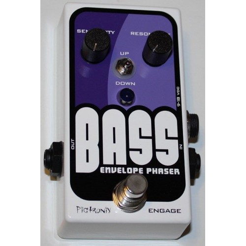 Included in this design is the Pigtronix staccato envelope circuit, which auto closes the envelope between notes, for un-matched articulation of high speed finger techniques and slap bass. Running on a stout, 18-volt power supply, the Bass Envelope Phaser has all the headroom you need to deal with active bass pickups and onboard preamps. A simple control layout of SENSITIVITY and RESONANCE knobs gets you to a wide array of perfect sounds within seconds and the UP / DOWN direction switch provides two distinct modes for laying into the various flavors of funk.