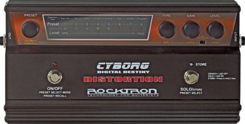 The Rocktron Cyborg Digital Destiny is a guitar distortion pedal that breaks new ground in the world of floor effects excellence. The Cyborg is a programmable guitar effects pedal that, though simple to use, satisfies those who crave more complex control and the ability to create multiple effect presets.