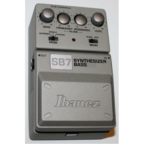 The Tone-Lok Series Ibanez SB7 is a synthesizer bass pedal that does its thing in real time—no drag, no tracking errors. You can even play chords. The SB7 bass pedal provides 3 modes: Auto Wah for that frequency-funky Shaft tone, Synth 1 for the light synth sound of '80s new wave, and Synth 2 for a deep, heavy Bootsy Collins-style funk bass sound.