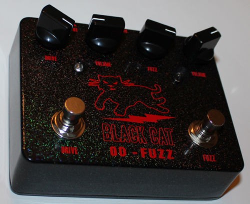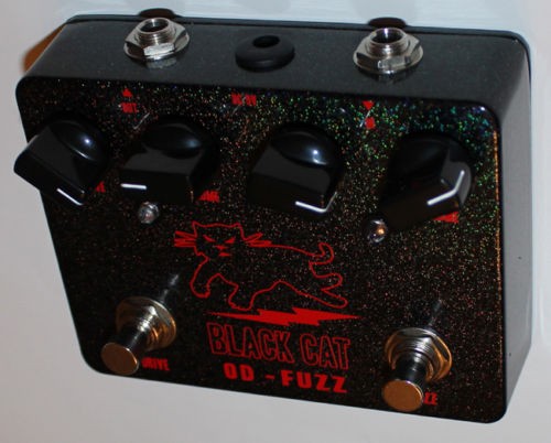 The Black Cat OD-Fuzz Hybrid is a versatile, two-channel distortion/fuzz box that combines the Black Cat OD-1 with a Germanium/Silicon Hybrid Fuzz Face in one pedal. Each channel of the OD-Fuzz has its own set of controls with separate LEDs for each side. The two channels can be used separately or together in combination. Each effect has its own distinct sound, but the blend of both channels together will yield an incredibly wide range of tonal possibilities, from slightly overdriven to full-blown fuzz. The controls become highly interactive when both effects are engaged.