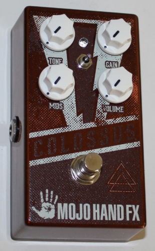 ALL HAIL THE COLOSSUS!!! Unleashed on an unsuspecting public, the Colossus is THE be all end all Russian/Civil War Muff style fuzz. Ridiculously tweakable, insanely versatile, and packed with 10 tons of Colossal Mojo. Rich harmonic drenched chords, sweet singing leads, sludgy stoner goodness, filthy bluesy mcnasties, Pumpkin flavored raunch…you name it, it does it. It features a 3 way toggle for different EQ voicings, as well as a full range “Mids” control to help you cut through the mix in a live setting. As with all Mojo Hand pedals, the Colossus comes standard equipped in die cast enclosure, features true bypass switching, and uses a standard 9v adapter or battery.