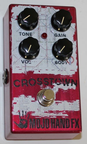 The Crosstown Fuzz is a germanium/silicon hybrid Fuzz Face circuit that offers you more control, more flexibility, super low noise operation, and guaranteed stability. Our hand-picked combination of germanium and silicon transistors coupled with an internal bias control gives you the option to tailor the Crosstown’s gain structure to your personal taste without having to worry about stability issues such as overheating. Even at the most extreme settings, the Crosstown gives astonishing note clarity, and when coupled with your guitar’s volume control, can yield pristine yet fat clean tones at almost every setting. In addition to the standard GAIN and VOLUME controls, the Crosstown features two additional knobs for total EQ control. First up is the full range TONE control which allows you to tailor the Crosstown’s treble response from warm and creamy to bright and sizzly. And lastly, the BODY control gives you the ability to either enhance or tame the wooly low end that is characteristic of most fuzz face circuits. Simply crank the BODY for a full and fat bass response, or roll it back for a smoother, creamier tone. This feature also gives the Crosstown the ability to work equally well with both single coil AND humbucker equipped guitars.