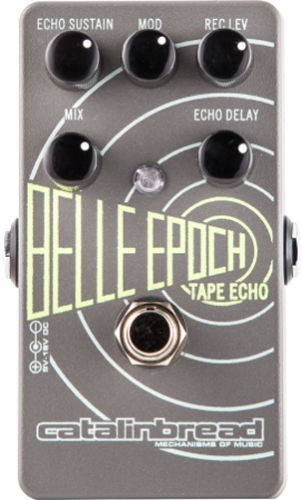 The Catalinbread Belle Epoch Tape Echo, has tape echo sounds so authentic you’d swear there was tape inside the pedal! Inspired by the Maestro Echoplex, EP-3 model, perhaps the most famous tape delay ever, the Belle Epoch features everything we love about the EP-3 in a small, maintenance free pedal format. We felt that a “tape echo” pedal was much more than just a standard digital delay with some “filtering” on the repeats. There are a lot of subtle and not-so-subtle traits of the Echoplex that needed to be implemented in order to be authentic. The preamp, the self-oscillation character, the ability to control the “record level” of the signal hitting “tape”, the wow and flutter, the way the repeats decay, the way the circuit interfaces with the amp and other pedals - all these things were important to get right. The original unit was used as a musical instrument unto itself and this is what we captured with the Belle Epoch.