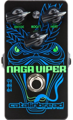 Set up your amp so that it is already overdriven a bit on its own. With non-master volume amps, this is usually with the volume turned up to at least noon. With master volume amps, set the pre-amp gain to have a moderate crunch overdrive sound. Set up the Naga Viper in classic treble-boost mode: