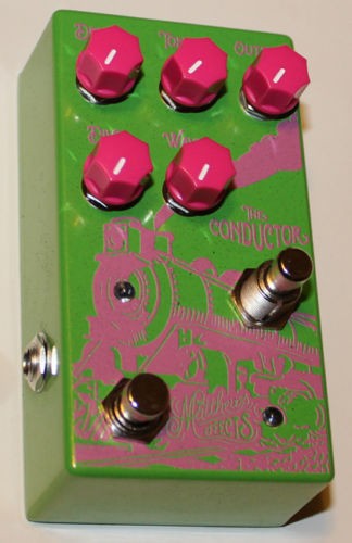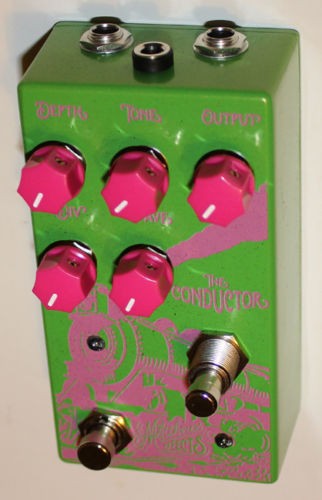 5 Wave Forms 5 Tap Divisions Built in Boost Circuit Compact Design Top hole jacks External Tap Control The Conductor will make sure your tremolo sound is always on time. With on board tap, external tap, 5 tap divisions, 5 wave forms, Gain, Tone and Depth your not going to find a tremolo with more going on in such a small package. Its sleek size and design is perfect for those who want a lot of tremolo options but not loose a lot of board space If your wanting a tap controlled tremolo with tons of features and options the Conductor is everything your looking for. Premier Guitar Review Depth: Controls how deep the effect is Tone: Acts as a low pass filter allowing dark and haunting tones Ouput: Is your overall volume Div: Lets you choose from 5 different tap divisions. 1/4, 1/2, x1, x2, x4 (Turning Left-Right) Wave: Lets you choose from 5 different wave forms. Sine Wave, Ramp up, Ramp Down, Triangle, Square (Turning Left to Right) true bypass Top Hole Jacks 9v power supply no battery option Designed, Built by Rick Matthews
