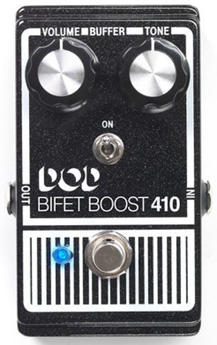 The Bifet Boost can deliver a huge amount of output to hit the front of your amp and drive it into distortion. The DOD 410 is often described as a clean boost, but there is just a little hint of grit in there that works well with already cooking tube amps.