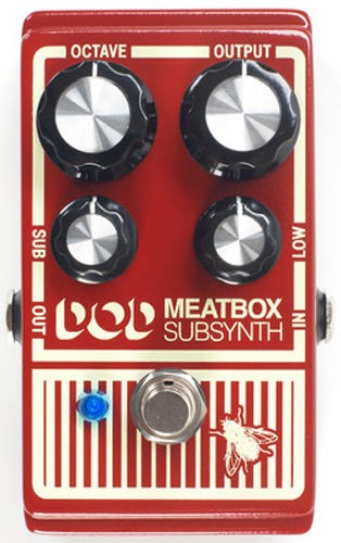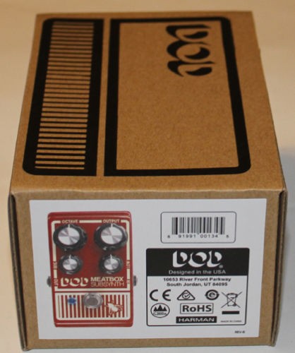 The DOD Meatbox (2015) offers independent Octave, Output Level, Subharmonic and Low Frequency controls. True bypass allows your tone to remain pristine even when the DOD Meatbox is off. This is a big difference from the original, which would color your bypassed tone. The modern 9V DC power supply input makes the pedal more pedalboard friendly.
