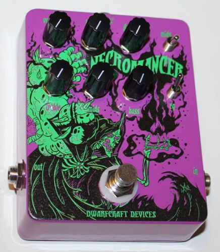 While designed primarily for guitar, the Necromancer is happy to destroy anything you can stick in it’s jack, and does exemplary work with the electric bass. Just watch those knobs, Dwarfcraft is proud to provide “too much” bass and treble on the dial.
