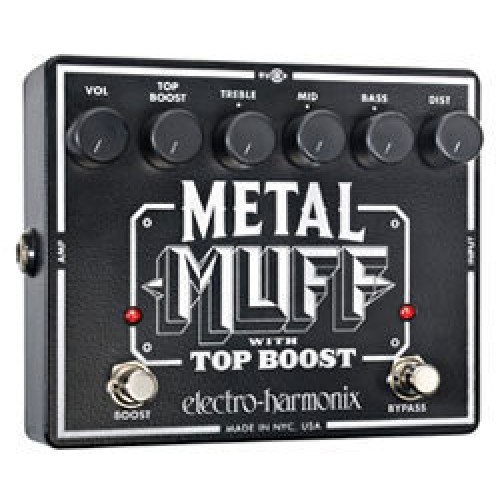 Electro-Harmonix spent many months creating what we believe to be the best heavy metal pedal ever built. The Metal Muff utilizes three powerful EQ bands, including a midrange control designed for perfect contouring. Along with beautifully sculpted mids, the Metal Muff offers commanding bass and defined top end—coupled with user-controlled distortion from pinched-edge to totally crushing—making it a heavy metal gold mine.