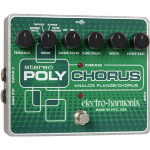 The much anticipated reissue of the classic E-H pedal that Kurt Cobain and Adrian Belew relied on to create their signature sounds but now in Stereo and with an improved signal-to-noise ratio. The Stereo Polychorus provides the lushest stereo chorus, rich, chiming flange and the over the edge effects that made this versatile pedal legendary.