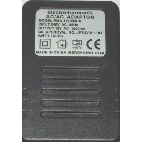 Brand New, Genuin Original EHX part, Electro Harmonix UK standard "Wall Wart" power supply unit, EHX model # UK12AC-1000, for Hot Tubes, Tube Zipper, The Wiggler, Black Finger, English Muff'n, Tube EQ, 12AY7 Mic Preamp, and LPB 2UBE. We can ship this part along for free ONLY IF you are buying the corresponding pedal that originally came with an USA wall wart from my eBay listings at the same time. If this is the case, we will send you a combined/revised the eBay invoice for the correct shipping cost. Also please note that we will take out the USA wall wart that originally came with the corresponding pedal, it will not be shipped along because it just adds to the shipping weight. Basically we are swaping out the USA one with this one in order not to add extra shipping cost. If the pedal you're buying does not come with any USA wall wart originally or if you are buying this by itself, then standard shipping cost will apply (USA shipping $5.50, International shipping cost $15.95), thank you !