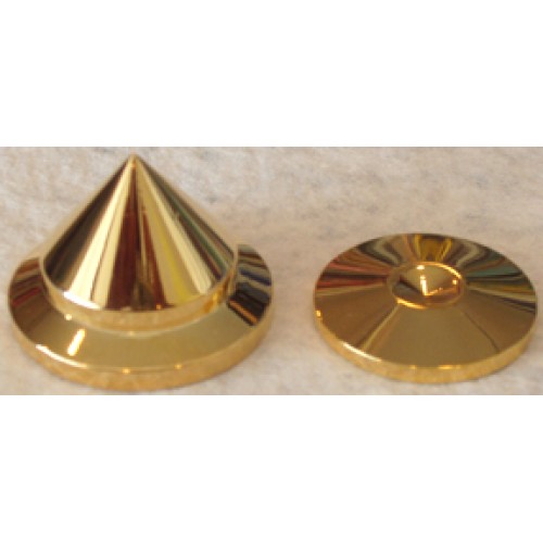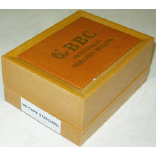 Brand new in original box, un-used condition, BBC Gold Isolation metal Cones/set of 4 pieces, model " ISO CONE Standard ", Each cone has 1 3/16" diameter, 13/16" height, comes with 4 gold footers, a very high quality set. Great for any source components such as pre-amps, CD/DVD players, etc. thank you for looking!!! Many Many sets are available, Please check out my other listing for more BBC vibration isolators.
