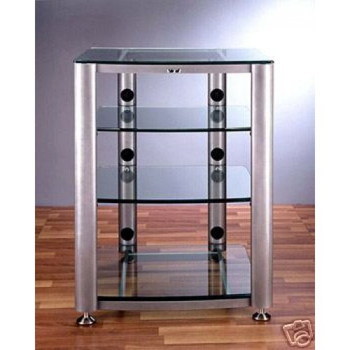 Top and bottom tempered glass shelves support up to 300 pounds and middle tempered glass shelves support up to 220 pounds.